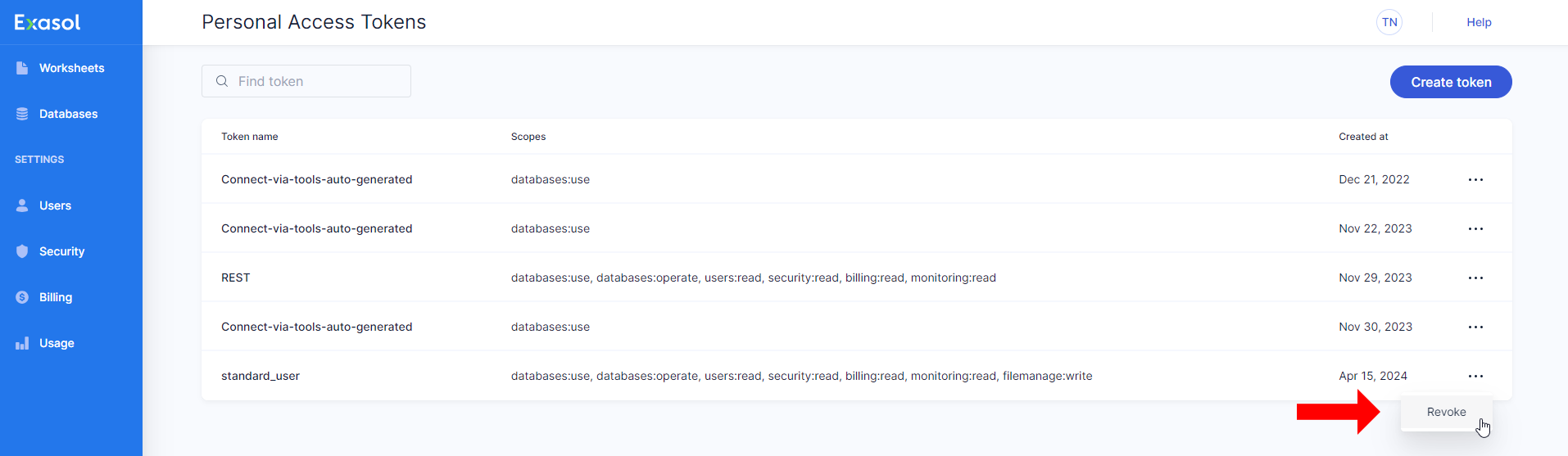 To create a new token, click on Create token.
