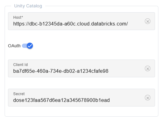 In the Lakehouse Turbo Settings tab, add the following in the Unity Catalog section: