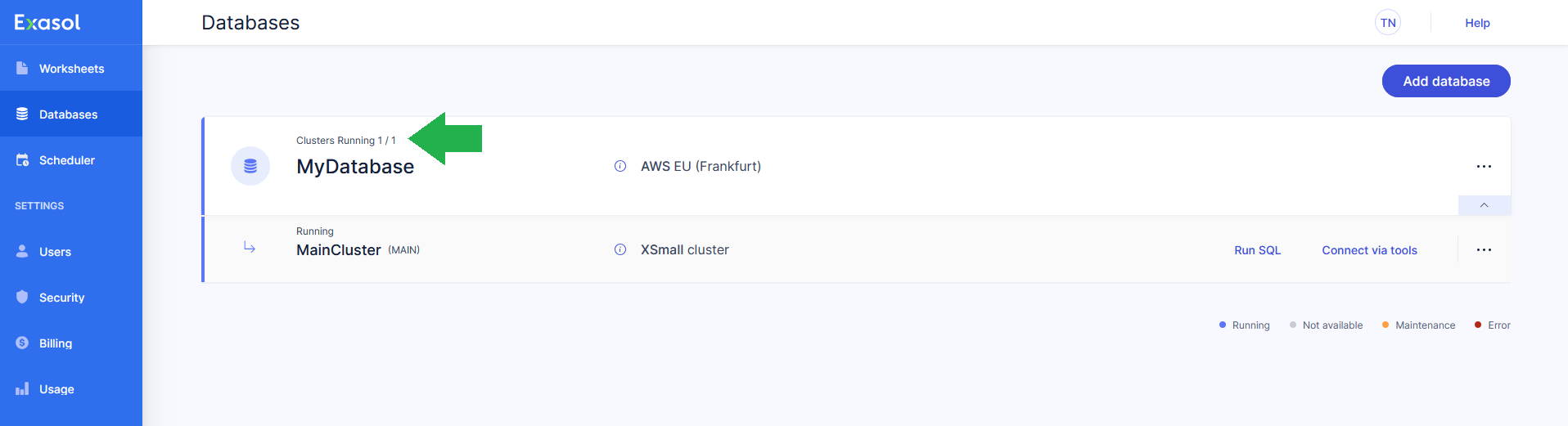 To learn more about how to create and manage databases and clusters in Exasol SaaS, see Database management (SaaS).