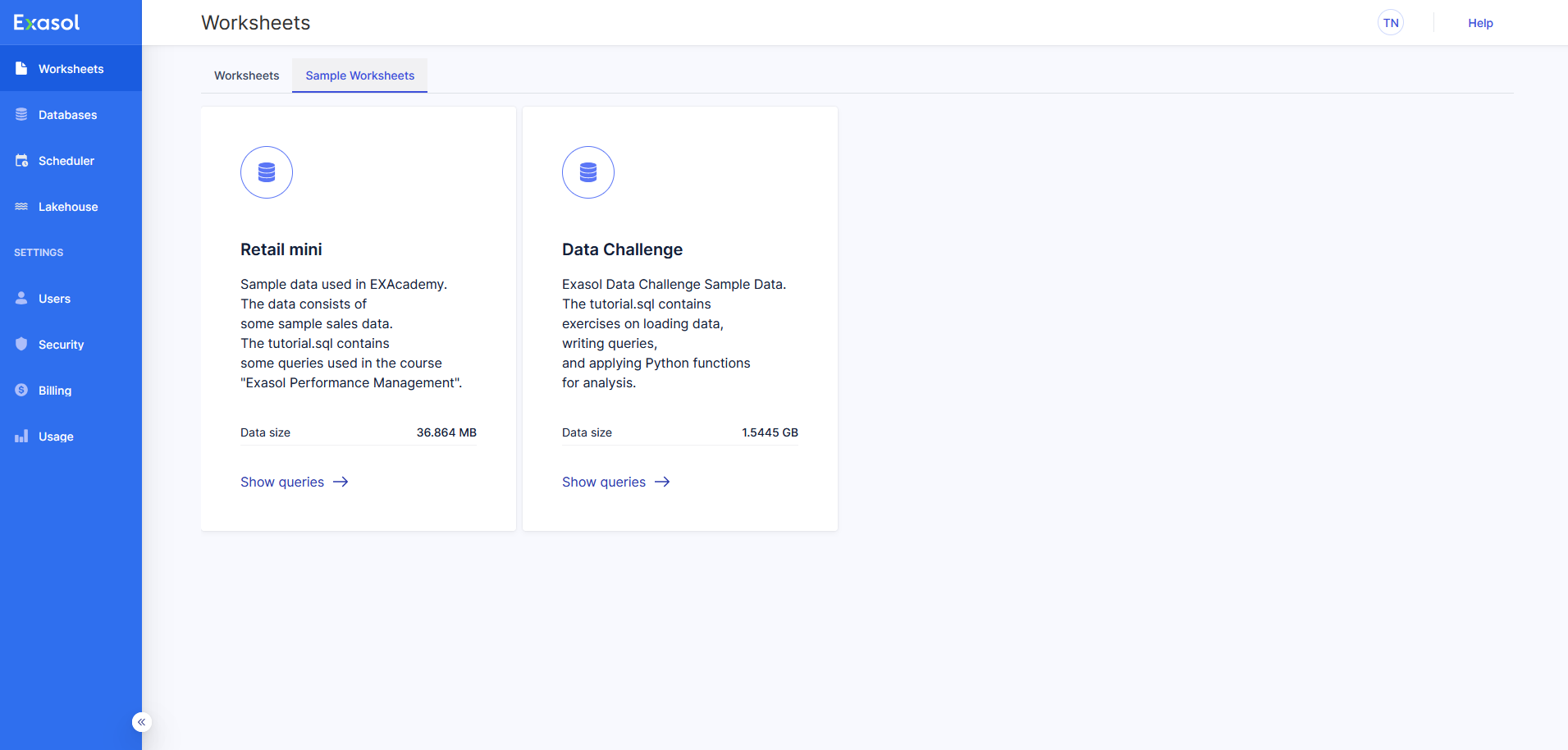 To learn more about how to use Worksheets to run queries in your Exasol SaaS database, see Worksheets.