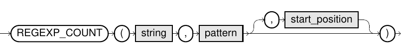 REGEXP_COUNT(string, pattern)is similar toREGEXP_COUNT(string, pattern, 1). -