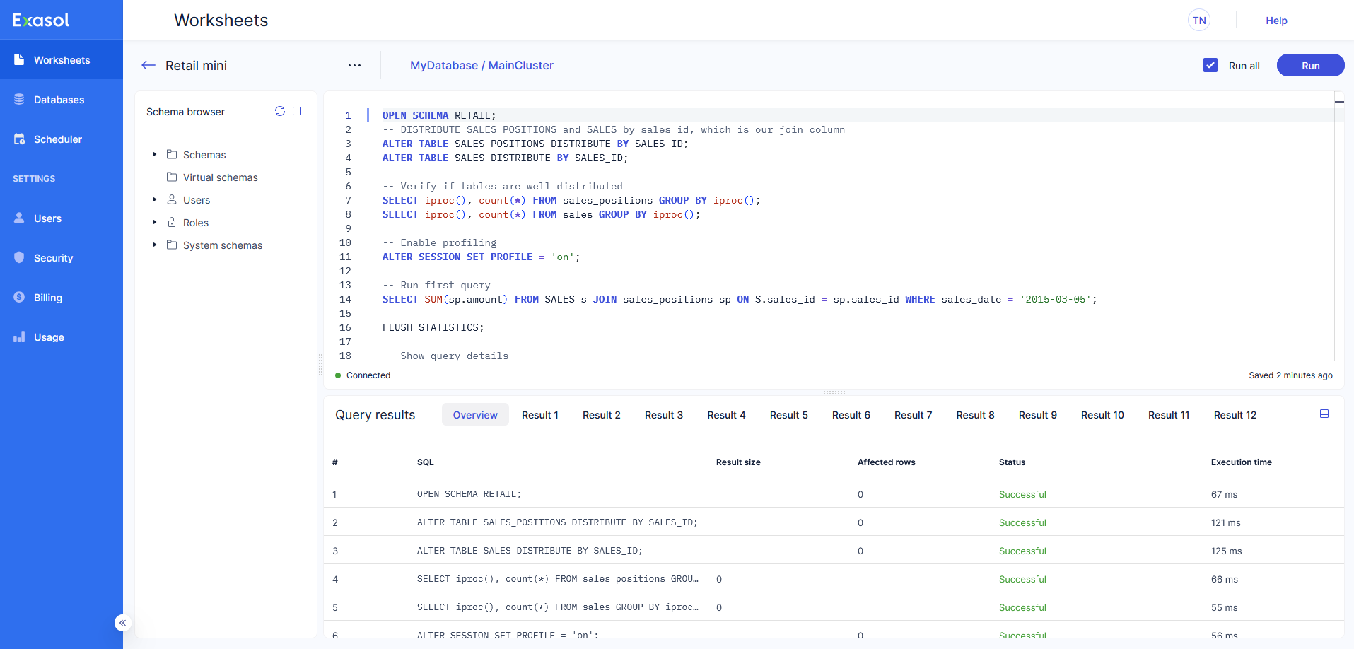 Learn how to use worksheets in Exasol SaaS.