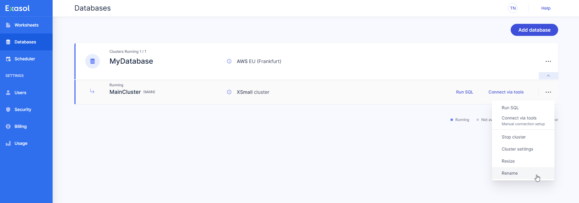 Learn how to rename a cluster in Exasol SaaS.