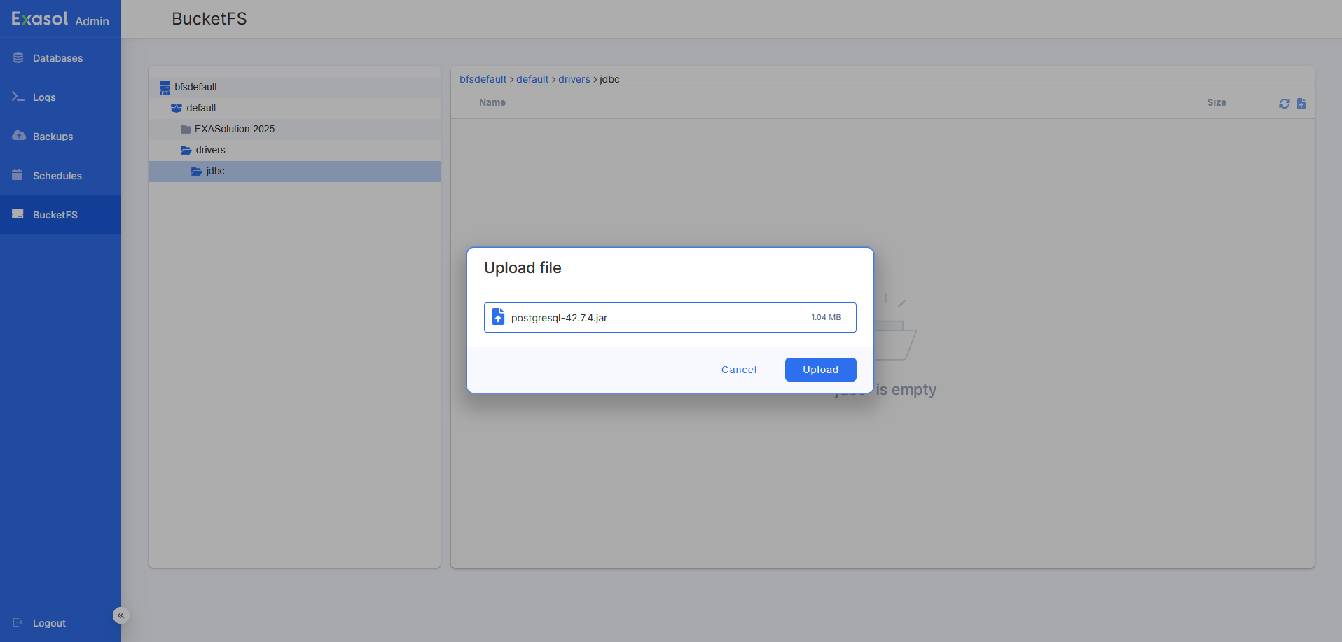 This article explains how to use the Exasol Admin UI to upload and manage files in BucketFS.