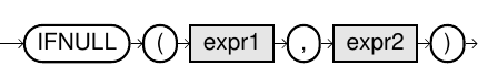 SELECT IFNULL(NULL, 'abc') IFNULL_1, IFNULL('xyz', 'abc') IFNULL_2;