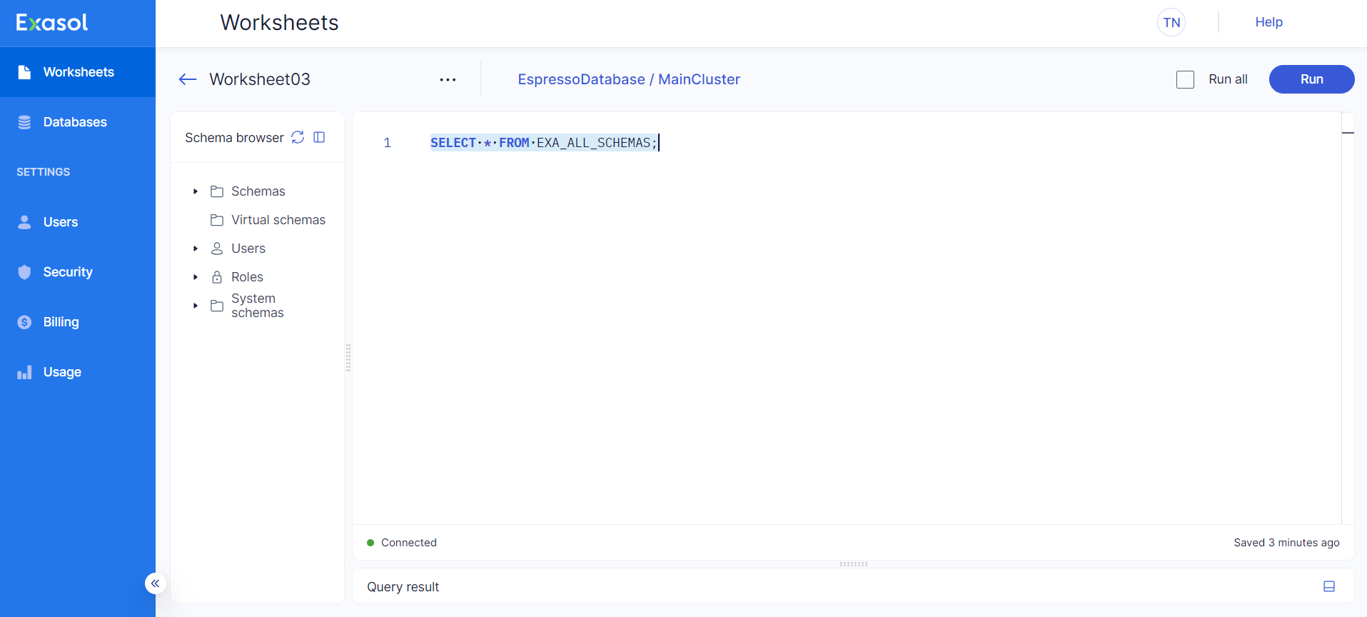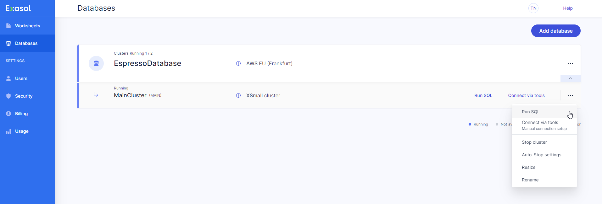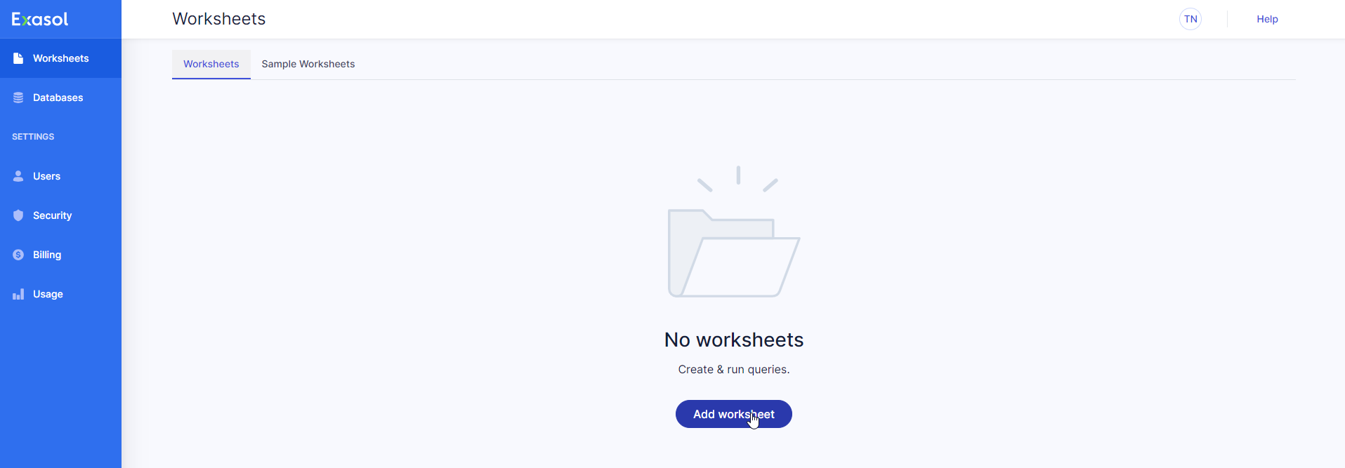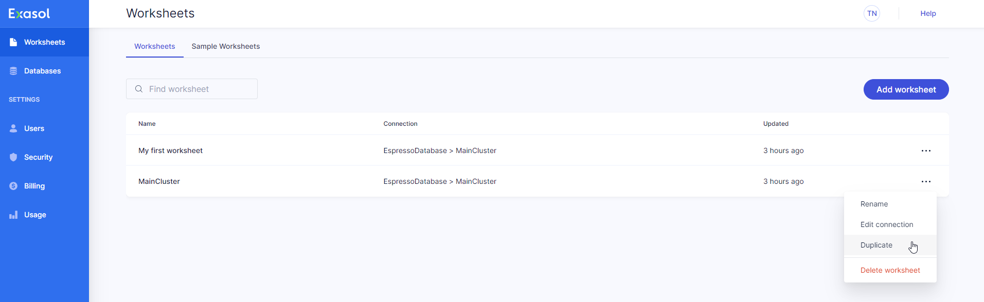Learn how to add worksheets in Exasol SaaS.